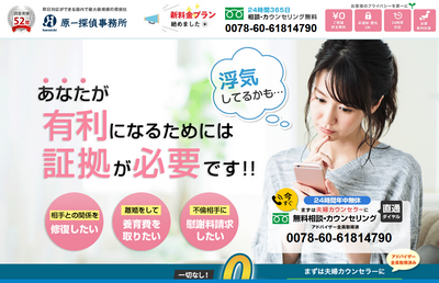 原一探偵事務所は、長年の実績を持つ大手探偵事務所のひとつで、浮気・不倫調査の相談件数も非常に多い探偵社です。